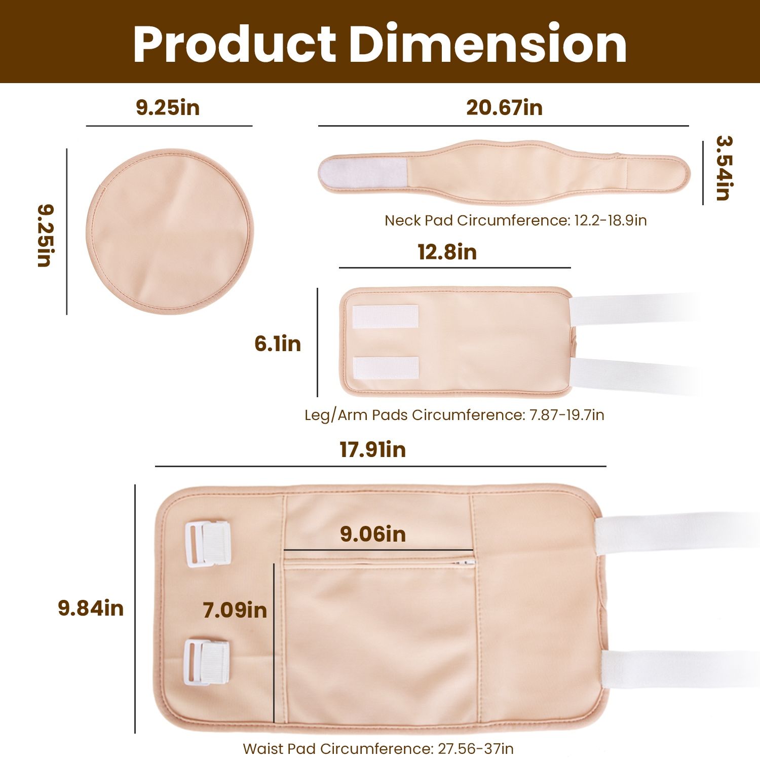 *Relax Your Body*:Comes with 1 wrap for the stomach,1 for the neck,2 for leg/arm,one pair for the chest nursing,optimal for relaxing your whole body. Just apply castor oil evenly to the middle of the wrap and wear it well for about 45mins to 1 hour to enjoy the massage oil nourish your body.