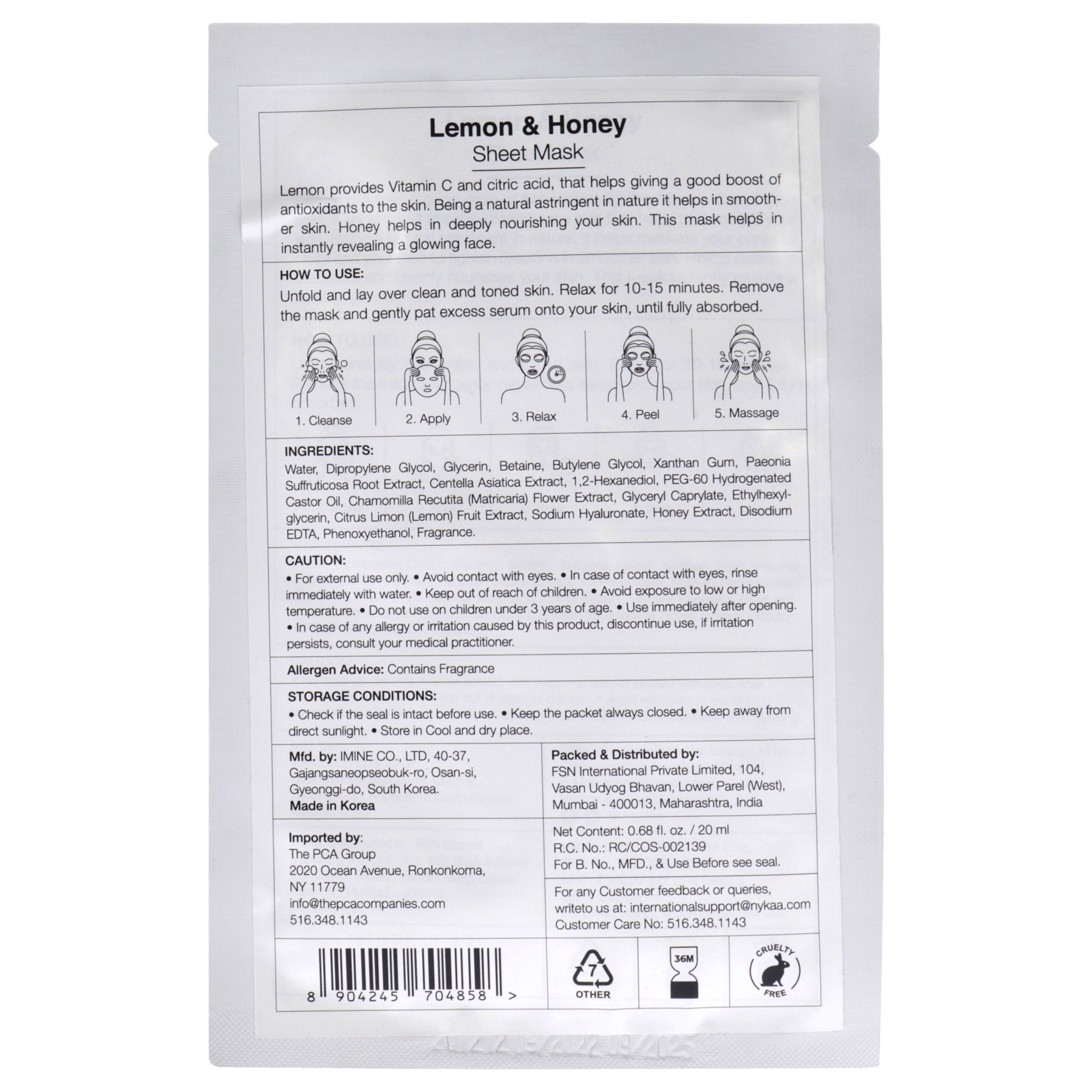 Skin Secrets Sheet Mask - Lemon and Honey by Nykaa Naturals for Women - 1 Pc Mask